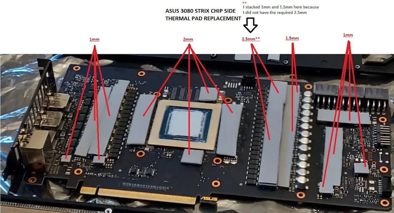 ASUS – ROG STRIX NVIDIA GeForce RTX 3080 OC thermal pad méretei